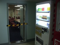 食堂。自販機も艦内に!祭壇もあります。乗組員を守ってください、神様。